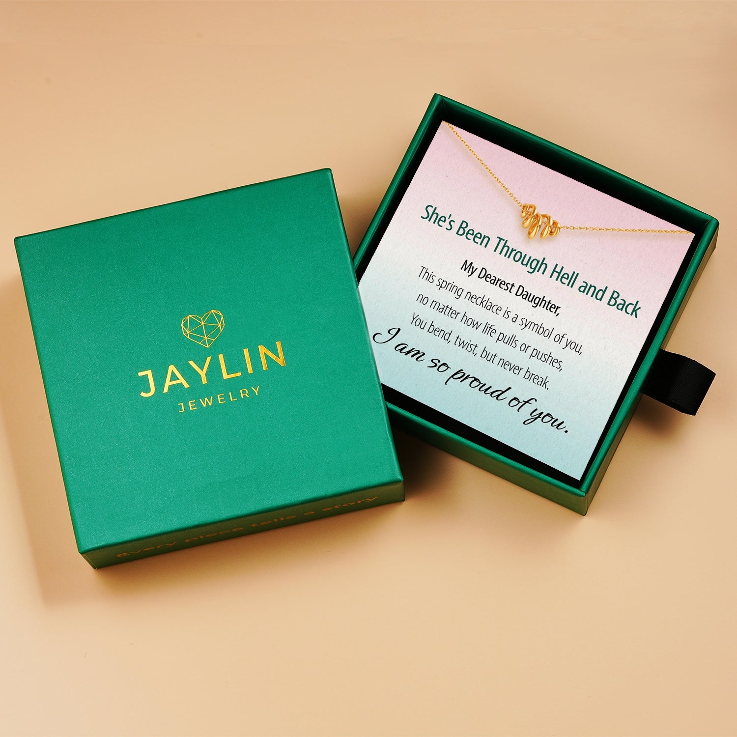 Surprise your daughter with the Twist but Never Bend Spring Necklace. This necklace is not only a beautiful symbol, but also a meaningful gift that will remind her of your love every time she wears it. Show your support and love with this special necklace.